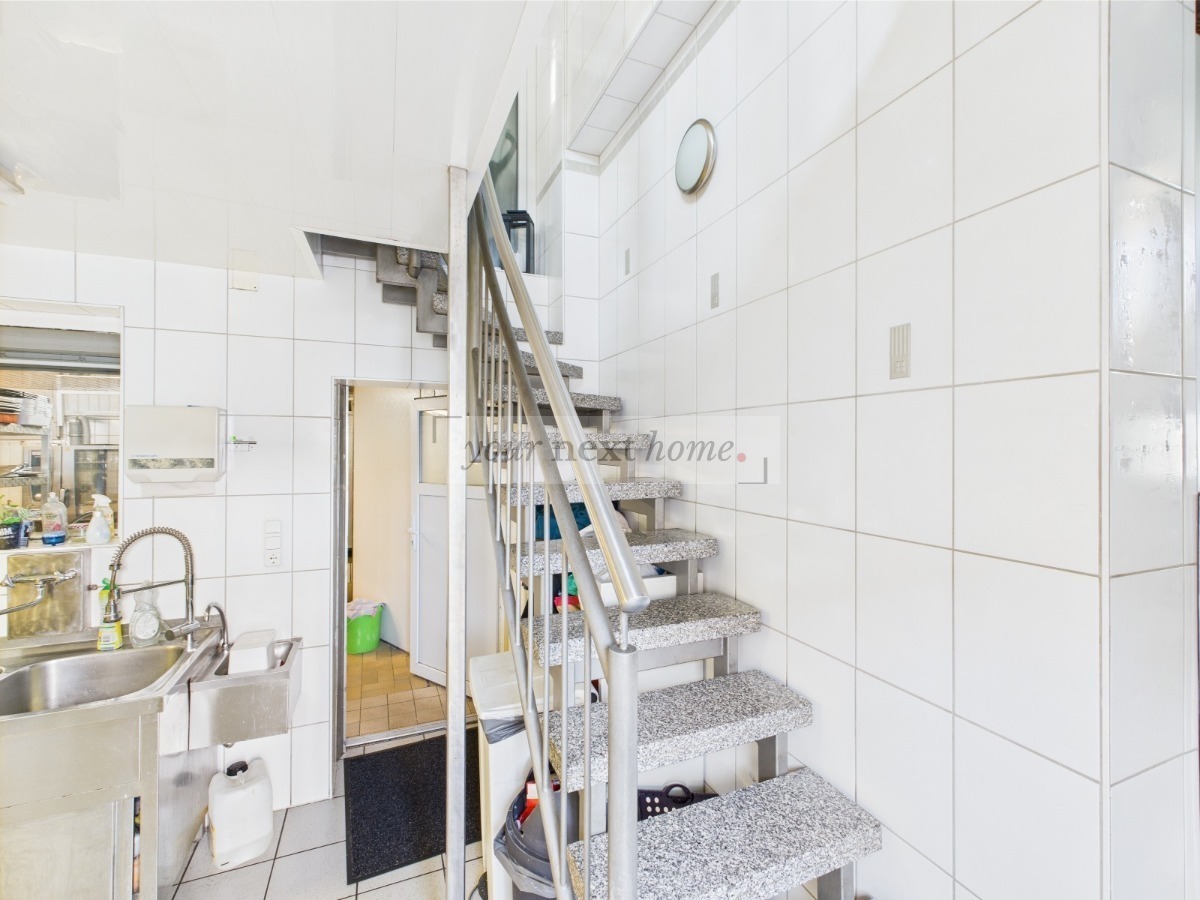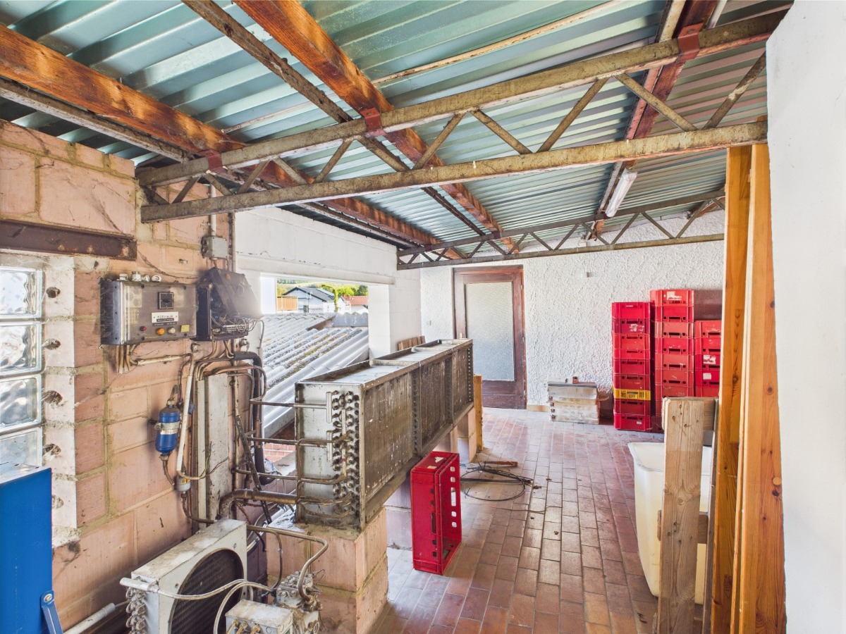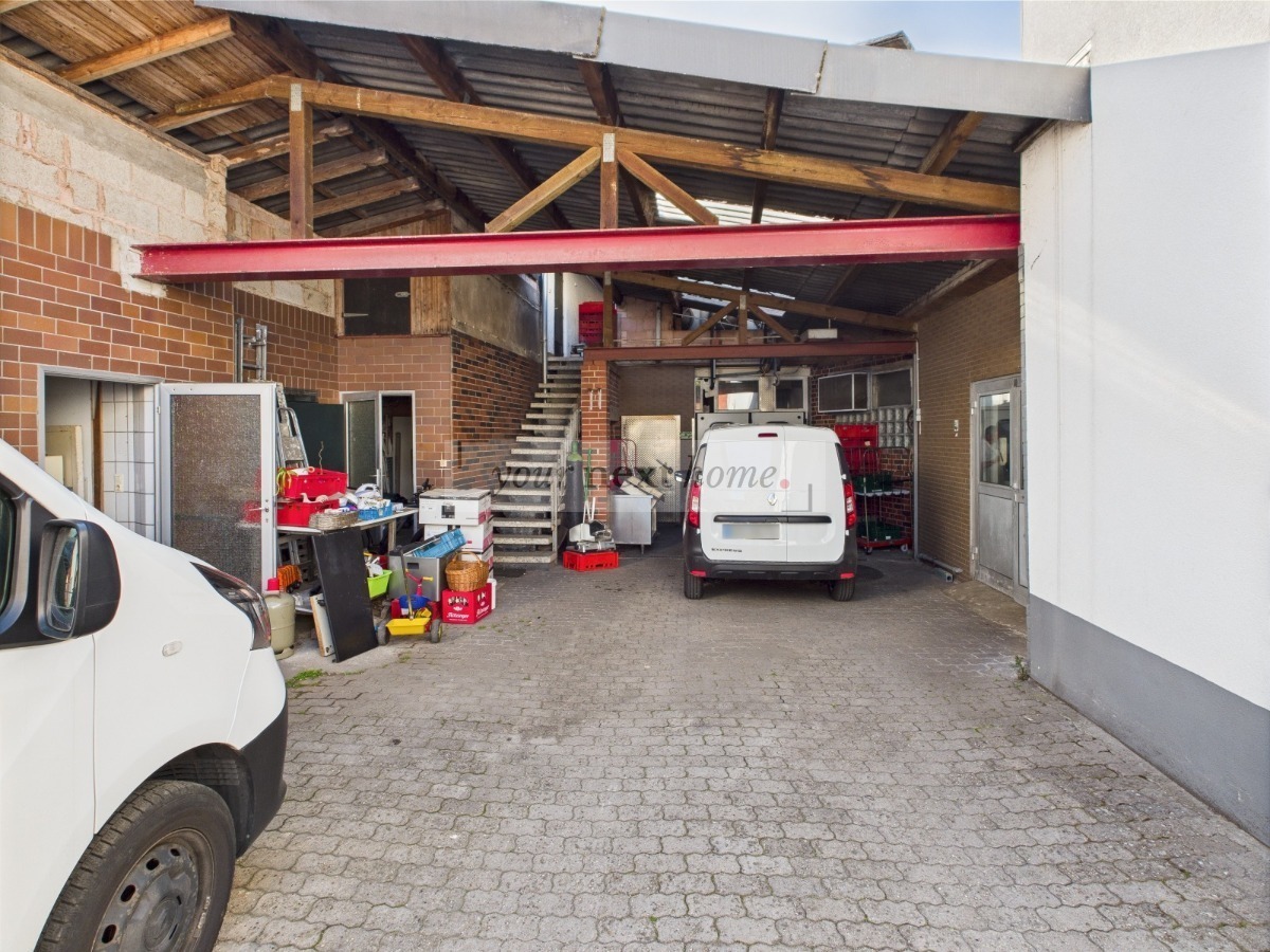Herzstück der Immobilie ist der seit Jahren erfolgreich betriebene Partyservice, der in Verbindung mit einer voll ausgestatteten Metzgerei-Infrastruktur betrieben wird. Die Gewerbeflächen umfassen ca. 736 m² und beinhalten unter anderem einen neuwertigen Verkaufsraum, mehrere Kühlräume, zwei Kunden-/Mitarbeiter-WCs, Vorbereitungsräume sowie geräumige Lagerflächen. Acht Außenstellplätze bieten Kunden und Mitarbeitern ausreichende Parkmöglichkeiten.